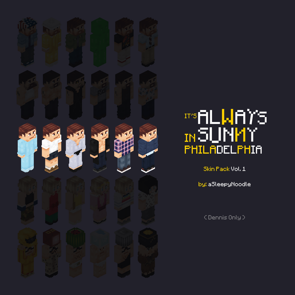 Do you like Minecraft and It's Always Sunny in Philadelphia? Do you wanted to to look like one of the gang? Then this pack is perfect for you!